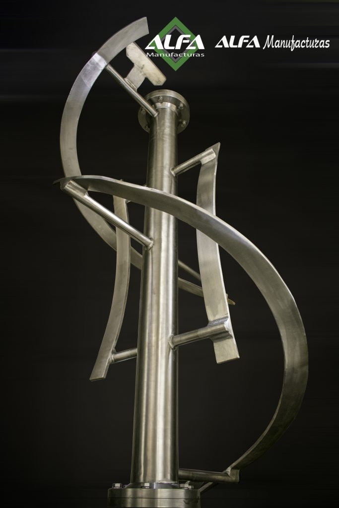 - Elemento Mezclador: Construido por medio de eje de 3 pulgadas de diámetro en el cual se colocan paletas centrales y raspadores en acero inoxidable AISI-304. Este elemento es guiado por medio de rodamientos (chumaceras de pared) colocados en bridas mecánicas.